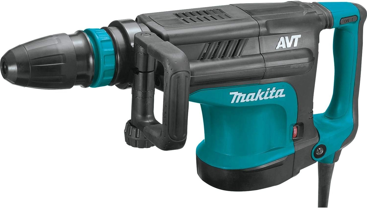 Un martillo demoledor potente para trabajos pesados. Compatible con brocas SDS-MAX, motor de 1,510 W y energía de impacto de 18,6 J. Velocidad ajustable de 950 a 1,900 min-1. Tecnología AVT para baja vibración.