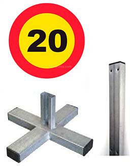 Señal metálica homologada galvanizada, con reflectancia nivel 1 y dimensiones de 60 cm. Incluye un poste de 1,5 metros con tubo de 80 x 40 mm y cruceta para un montaje sencillo con la tornillería proporcionada. El soporte estándar asegura una instalación precisa y segura para señales de tráfico, con un pie de cruceta diseñado para tubos de 80 x 40 mm, garantizando robustez y durabilidad.